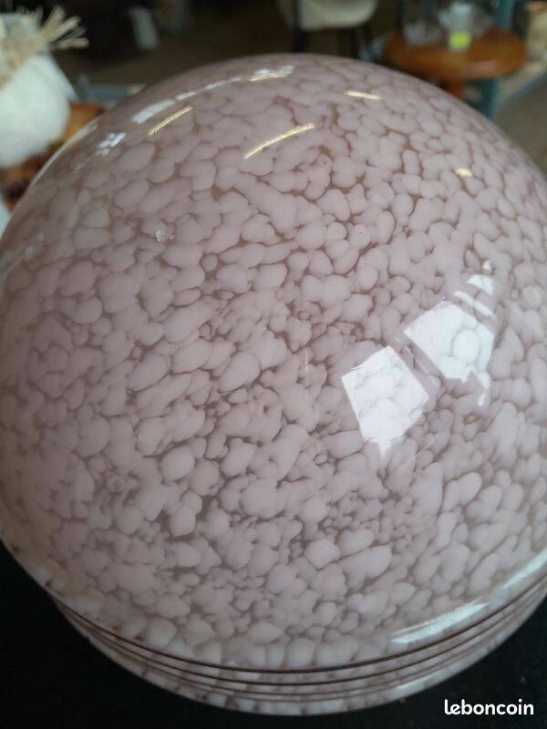 Lampe boule art déco en verre sur socle, hauteur 21cm.